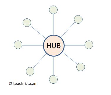 When the hub receives a packet of data, it re-broadcasts the packet to every other connected device. This ensures that the data gets to where it needs to go.