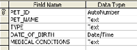 In the database below, the data is split up into sensible groups i.e. customer data, pets data and appointments data. Then a separate table is made for each group.